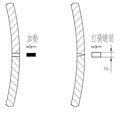 如果縫隙沿筒殼內(nèi)外不均勻,一般是外側(cè)頂緊,造成貼緊的假象。可以從外側(cè)在接合縫部位打騎縫銷(xiāo)并可靠固定,將縫隙處撐緊。