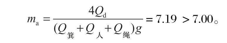 故所選鋼絲繩安全系數符合要求。