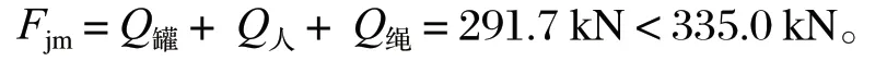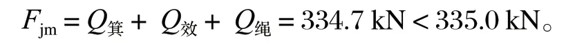 靜張力 Fjm 小于設計值,強度校驗合格。